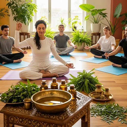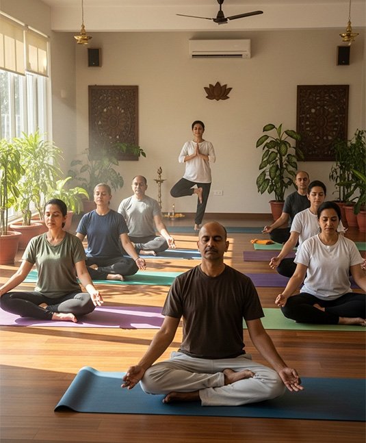 At Life Rhythm Yoga Wellness Studio, our mission is to guide individuals toward complete well-being—physical, mental, & spiritual — through the timeless wisdom of Yoga, Ayurveda, Naturopathy, & Panchakarma.